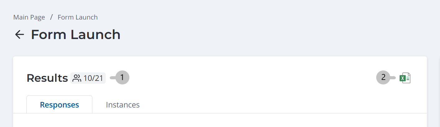 The Instances tab lists respondents' form instances provided within the currently viewed form launch. The instances are grouped by state.