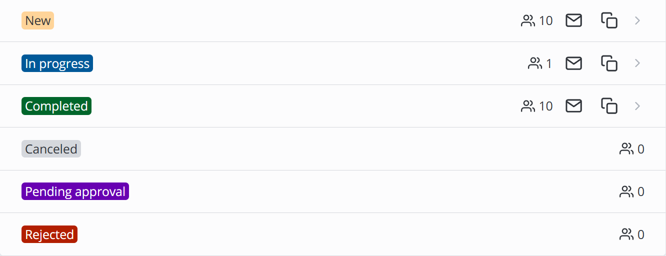 - (optional) Go to one of the available subcategories: Scheduled, In progress, Completed, or Canceled.