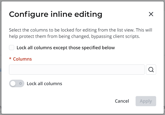 Unless Lock all columns is switched, you must fill in the Columns field to click Apply.