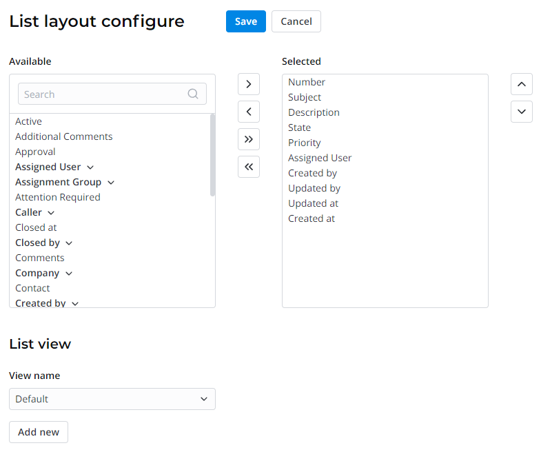 In SimpleOne, configuring the list layout allows you to change the list appearance. You can create list views and configure which columns appear in the list, and define their order.
