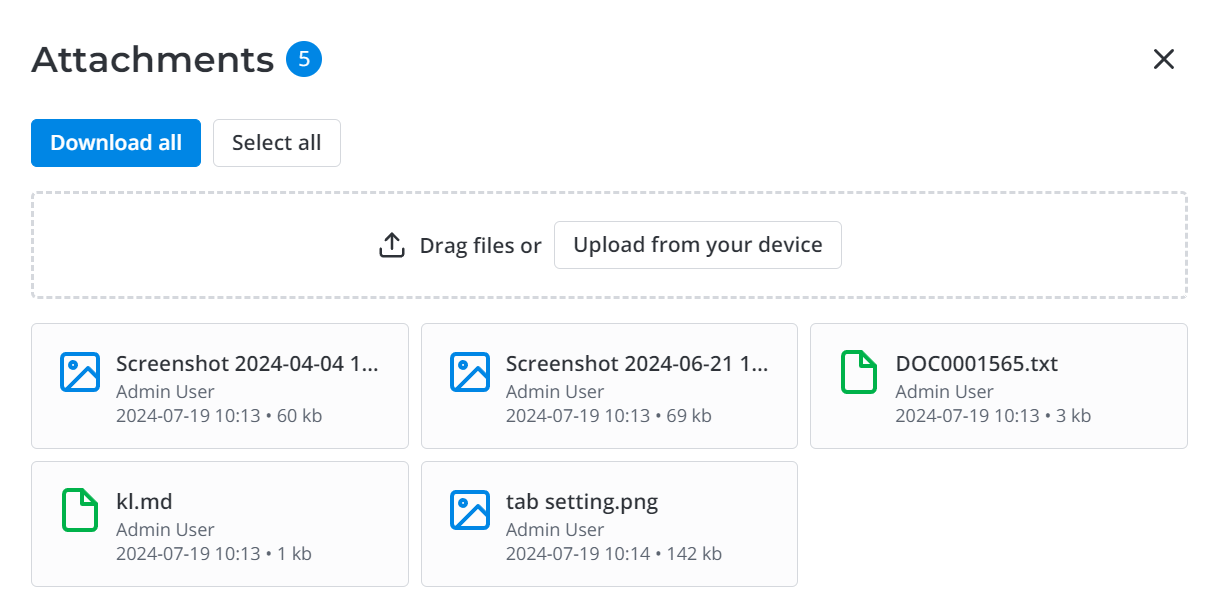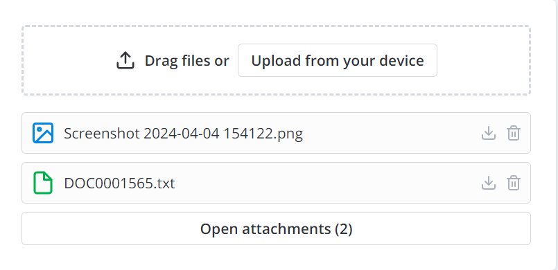 - Add files from the clipboard directly on the form by using Ctrl + V shortcut while hovering over Drag files area.