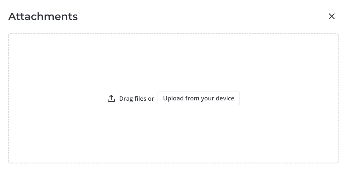 Some records may have an attachment area. You can use this area to upload and manage attachments without leaving the record, or click Upload from your device to open the attachment window. Note that if a record has an attachment area, the paper clip icon not displayed.