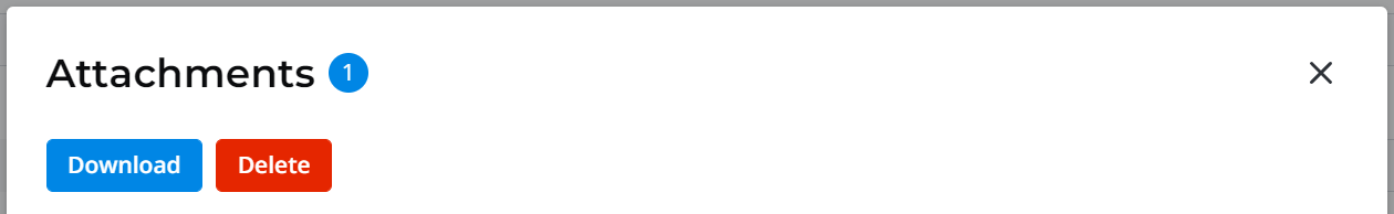 The attachment window is the main interface to upload and manage files. The attachment window can be accessed by clicking the paper clip icon normally displayed in the upper right corner of the main area.