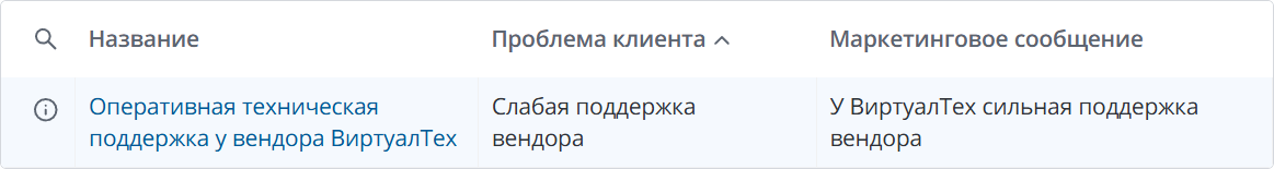 - hideInfoColumn – если установлено значение true, скрывает колонку с кнопкой и поиском по столбцам.