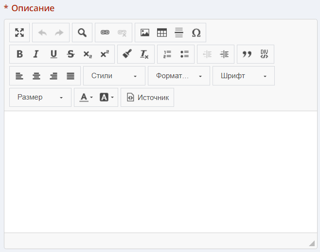 Используйте тег <htmlEditor>, чтобы добавить поле для ввода форматированного текста с поддержкой HTML.