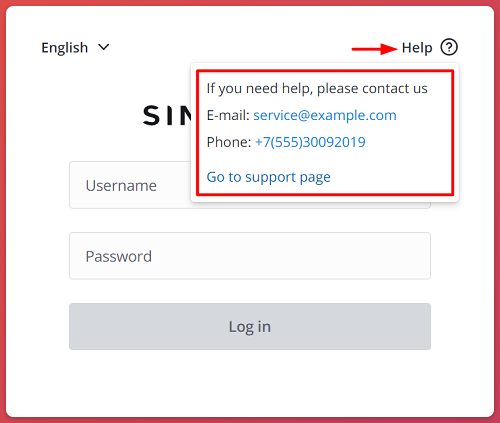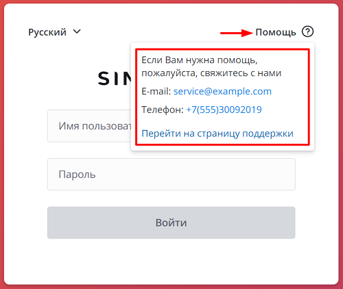 <p>Если Вам нужна помощь, пожалуйста, свяжитесь с нами</p><p>Электронная почта: <a href="mailto:service@example.com">service@example.com</a></p><p>Телефон: <a href="Телефон:+7(555)30092019">+7(555)30092019</a></p><p><a href="https://simpleone.ru/">Перейти на страницу поддержки</a></p>