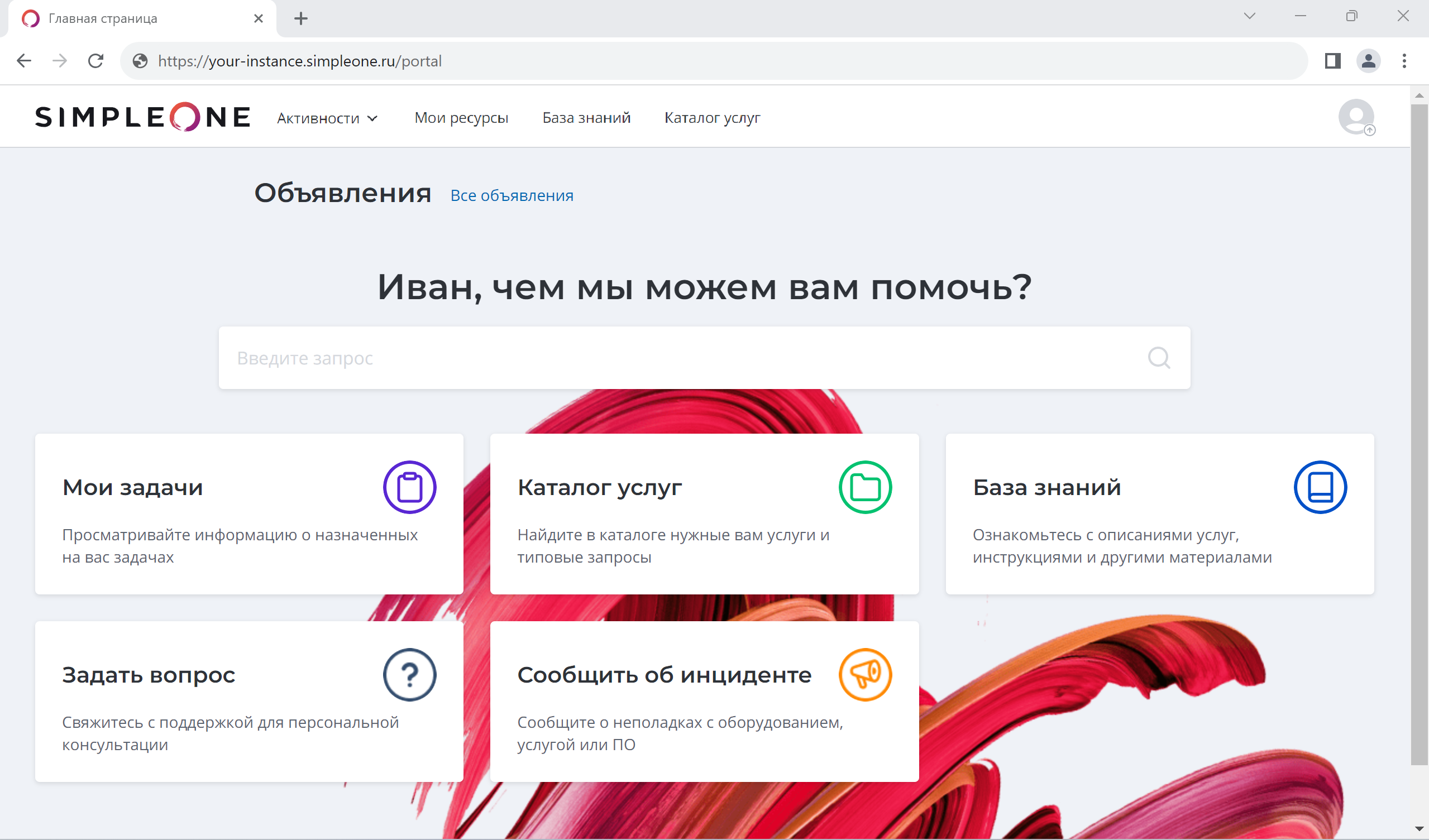 Настройте свой экземпляр SimpleOne: добавьте уникальные визуальные элементы, определите URI, и установите значения по умолчанию для языка и часового пояса. Укажите контакты для обратной связи, текст для подсказки на странице авторизации и страницу перенаправления для неавторизованных пользователей.