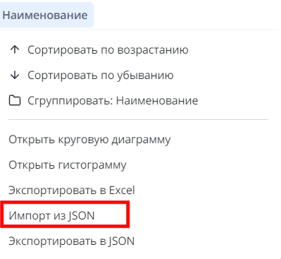 2. Нажмите на область заголовков колонок и выберите Импорт из JSON в контекстном меню.
