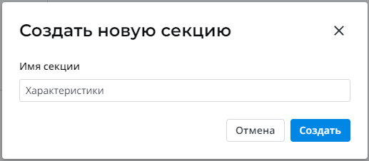 В появившемся модальном окне, введите название секции и нажмите Создать.