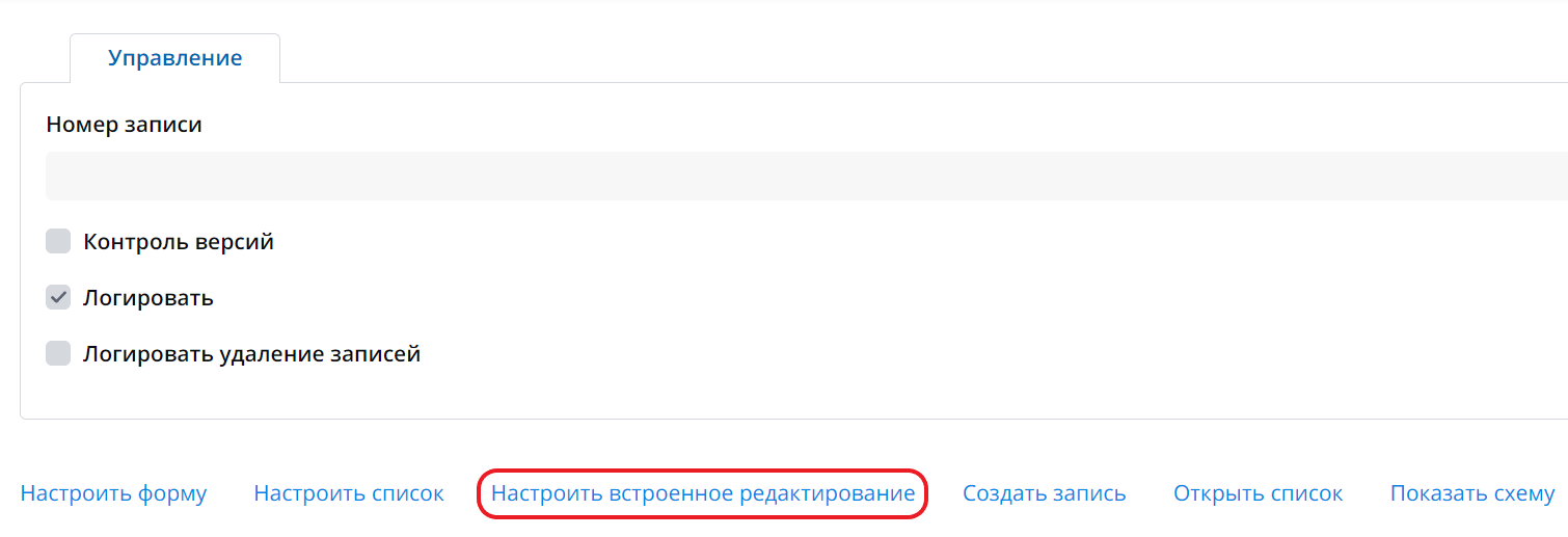 1. На форме нужной таблицы нажмите Настроить встроенное редактирование.