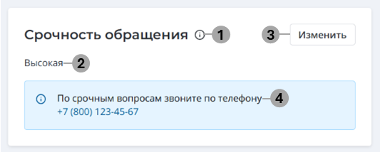 - Кнопка, позволяющая изменить срочность обращения.
