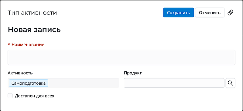 Нажмите , чтобы выбрать существующий в системе тип активности.