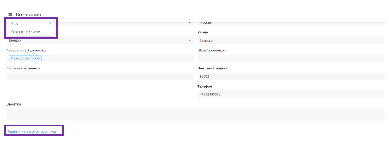 Компактный режим позволяет видеть больше информации на одном экране. Для этого в нем уменьшены заголовки и отступы полей форм.